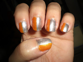 Here are some manis I did this past couple of days. I have been running out of ideas. I'm completely blank. I don't know what going on. :( I decided to try whatever came to mind. Here is what I ended up with.